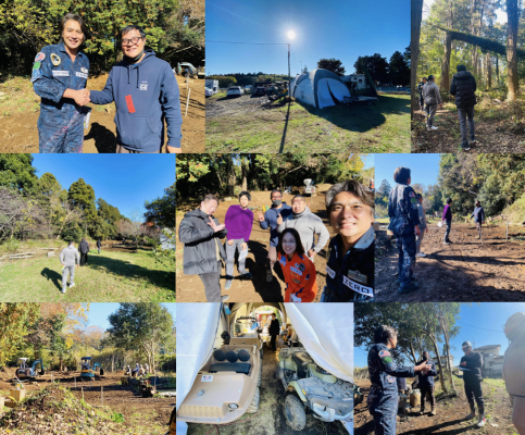 当日は、『nuovo EX千葉・成田』代表板谷俊明氏にご案内いただき、重機操縦講習の様子を見学し、バギー講習の会場となる森林エリアを見学しました。また、ASTRAX月面シティシミュレーション施設を設置するための確認を実施しました。