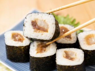 三重県尾鷲市で育った養殖の鯛を醤油とほんのりわさびをきかせたオリジナルタレで漬けてあります。