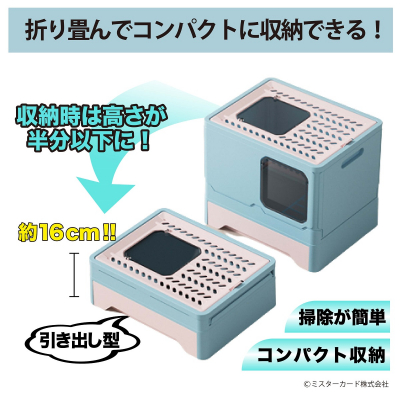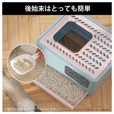 ミスターカード株式会社(本社:埼玉県川口市)は、臭わない散らからないドーム型猫用トイレ「コンテナ猫トイレ」を2022年12月20日(火)から発売いたします。ミライオンの人気カプセルペットシリーズに新バージョン追加!砂が飛び出しにくいドーム型。後始末が簡単な引き出しタイプで付属のスコップで手を汚さない。猫についた砂も内部や天板のステップで落としやすい設計です。天井や前面どちらからの出入りできて、大きな猫ちゃんでも動きやすいサイズ感です。使わない時に折りたたんで16cmの隙間に収納できたり、長期旅行先に持ち込めます。詳しくはウェブサイトをご覧いただけますでしょうか。