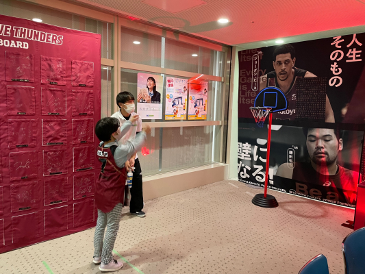 今回出展する城南進学研究社ブースでは、「「デキタス」解答&「城南コベッツ」インスタフォローでフリースローチャレンジ!」を実施。小中学生はオンライン学習教材「デキタス」で問題に挑戦、高校生以上はインスタグラムで「城南コベッツ」をフォローすることで、ブース内に設置したバスケットゴールでフリースローにチャレンジできます。バスケットを観戦しながら、自身もフリースローのワクワク感が楽しめる、毎回列をなすほど大盛況のイベントです。