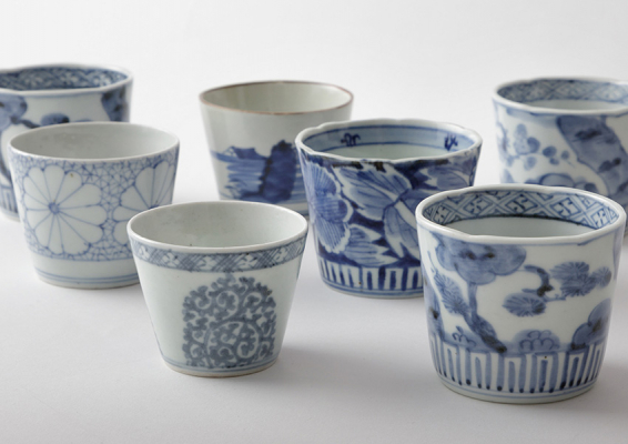 そして蕎麦猪口の絵柄は、あらゆる器類の中でも類を見ないほど豊富です。「蕎麦猪口ぐらい衣装持ちは無い」と柳宗悦も「藍絵の猪口」の中で記しているほど。動植物、自然、幾何学、紋など、その時代の流行も表していたようです。