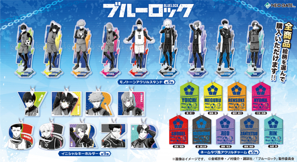 TVアニメ『ブルーロック』より、等身イラストをモノトーンアレンジしたクールな【アクリルスタンド】【イニシャル キーホルダー】と、キャラクター名やモチーフを使用したオシャレな【ネームタグ風アクリルチャーム】の発売が決定いたしました!