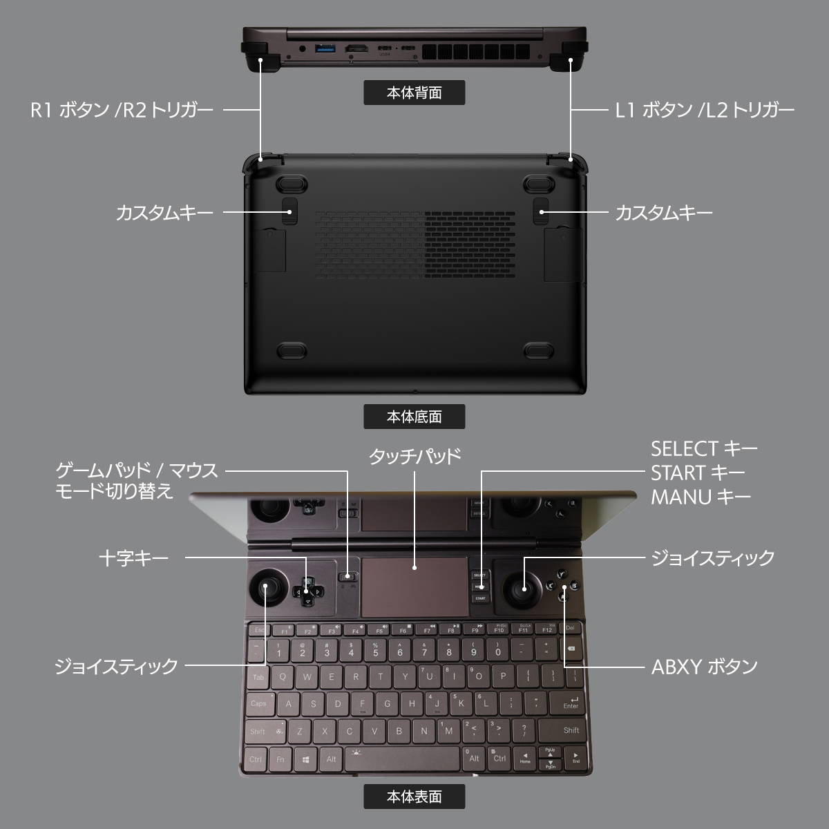 GPD WIN Max 2は、AMD Ryzen(TM) 7 6800Uを搭載し、10.1インチ大画面IPS液晶を備えたポータブルゲーミングPCです。16:10の幅広いディスプレイは1920×1200(最大2560×1600)の高解像度に対応し、ホール素子を採用した高精度ジョイスティックによる直感的な操作と、本体底面に搭載された2つのカスタムキーにより、様々なPCゲームをどこでも楽しめます。ゲームパッドはマウスモードに切り替えてWindowsの操作に活用できる他、タッチパッドとQWERTY物理キーボードを備えることで、超小型モバイルノートPCとしてリモートワークにも最適です。ゲームパッドは付属のマグネットカバーで保護することができ、カバーを使用しないときは本体背面に収納することが可能です。