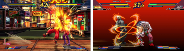 通常技をタイミングよく入力することで連続させるラッシュコンボ。普通は隙のすくない弱攻撃からつなぐのが定石だが、コンボを長くつなぐことでコンボ補正が働き、トータルダメージが少なくなることも。そこで、チャンスがあればいきなり強攻撃から始動し、必殺技や超必殺技につないでいくことで、大ダメージが狙える。