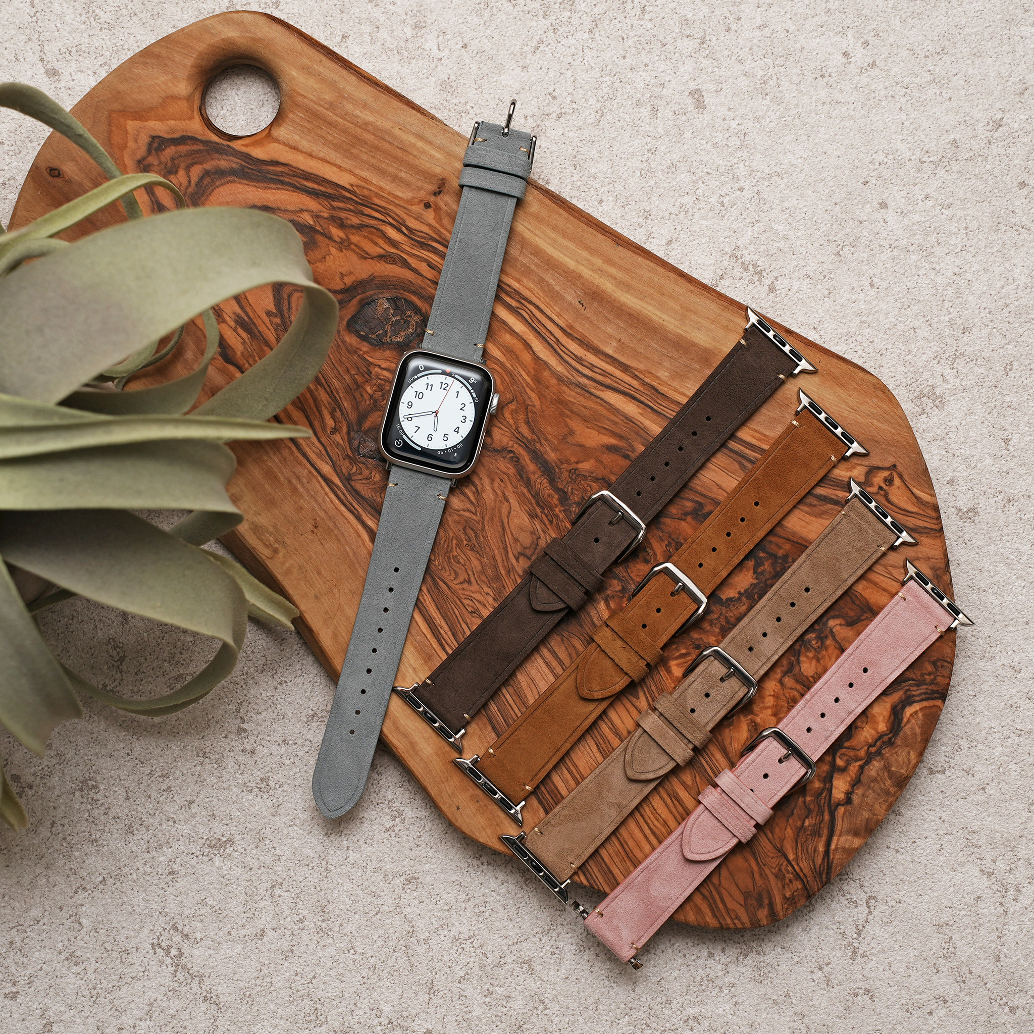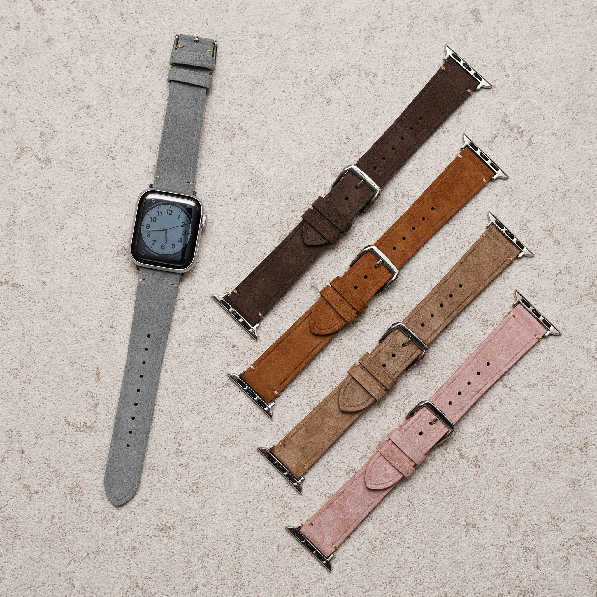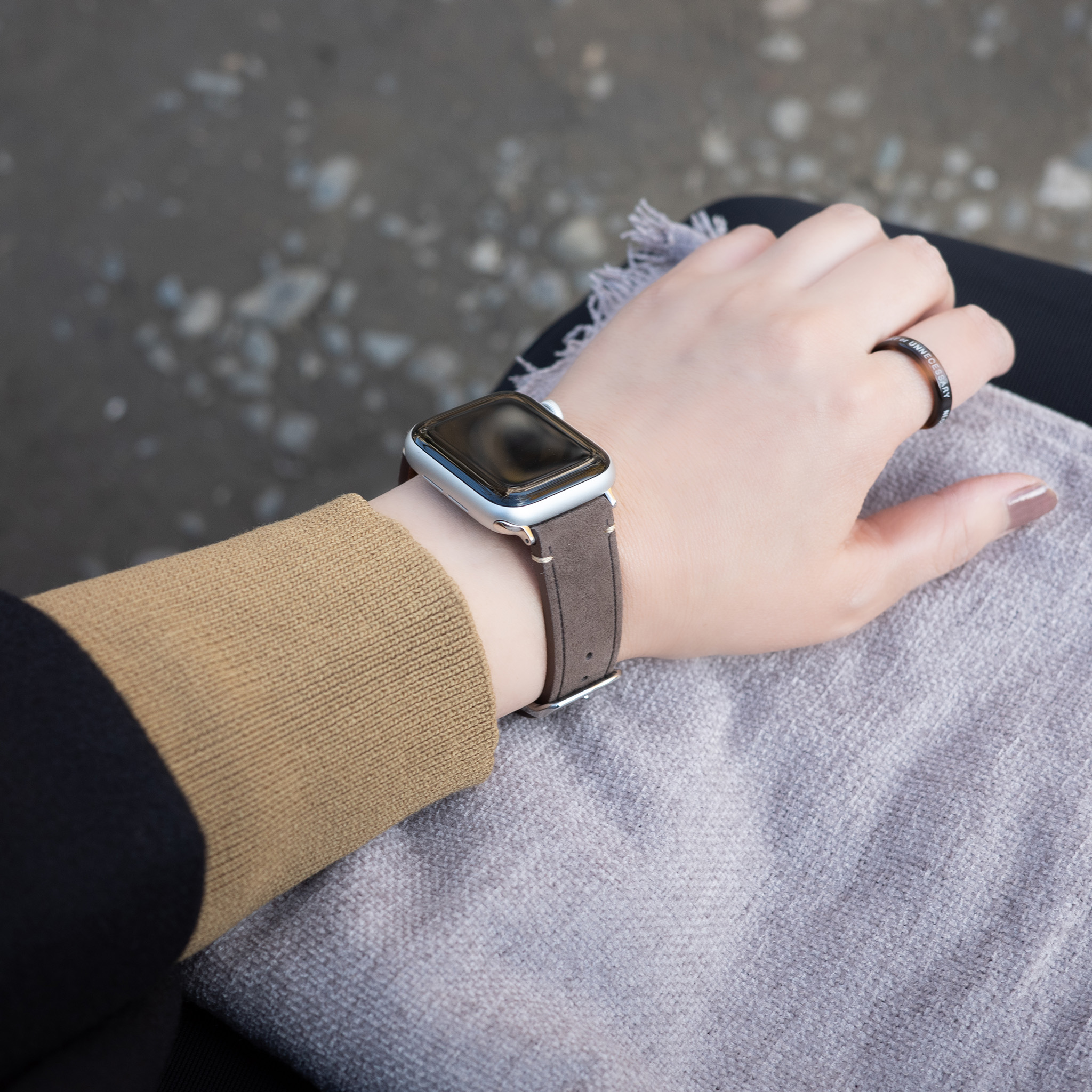「スエードバンド ムートン for Apple Watch」は、羊革を起毛させたスエード素材で作られたApple Watch用交換バンド製品です。