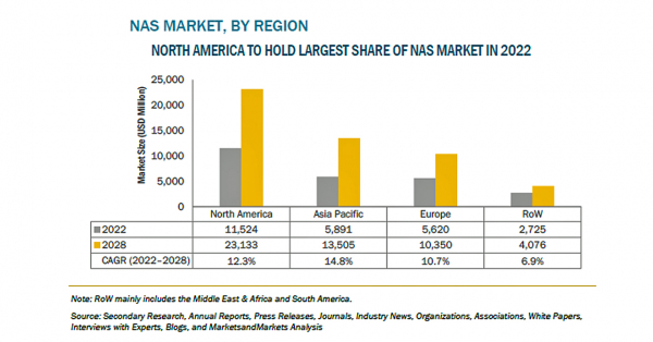 NAS(ネットワーク接続ストレージ)の市場規模は、2022年の257億米ドルからCAGR12.1%で成長し、2028年には510億米ドルに達すると予測されています。