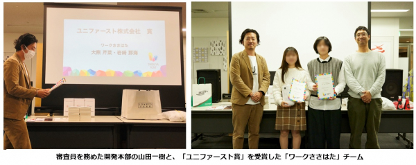 当発表会では、「ワークささはた」の“海の豊かさを守ろう”に焦点をあてた作品を「ユニファースト賞」に選出しました。