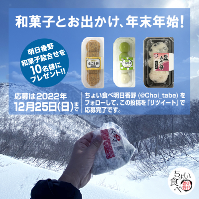 この度、ちょい食べ明日香野は2022年12月17日より、「和菓子とお出かけ、年末年始!キャンペーン」を開始しました。