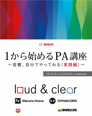 オタイオーディオ株式会社が運営する機材販売店OTAIRECORD は、ボッシュセキュリティシステムズ株式会社の有するPA 機器世界的ブランド「Electro-Voice」「DYNACORD」と共に2023 年1 月15 日(日)、「OTAIRECORD presents 1 からはじめるPA 講座~音響自分でやってみる(実践編)~supported by Electro-Voice,DYNACORD」を開催します。