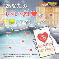 ・実施方法:実施期間になりましたら、SNS投票に参加している各温泉地のInstagramまたはTwitterのアカウントより規定画像を含んだ投稿が公開されます。そちらに「いいね!」をしていただくだけで投票は終了です。