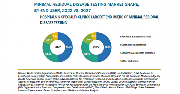 微小残存病変検査の市場規模は、2022年の12億米ドルからCAGR14.0%で成長し、2027年には23億米ドルに達すると予測されています。同市場の成長は、がんや血液悪性腫瘍の患者数の増加、政府によるがん啓発活動の活発化、企業間の連携やパートナーシップの強化などに起因しています。同市場は、技術、用途、エンドユーザー別に分類されています。