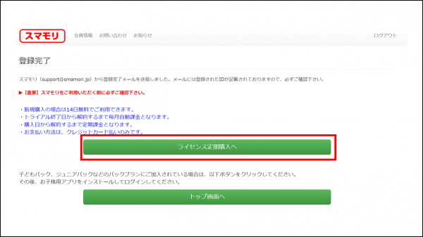 1,スマモリに登録後、ライセンス定期購入をクリック