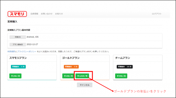 2, 今回対象となる、ゴールドプランの年額をクリック