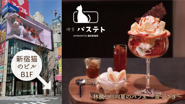 株式会社アズフードシステムズ(本社:東京都中央区、代表取締役:森田威)が運営する、新宿駅東口すぐの喫茶店「喫茶 パステト produced by 猿田彦珈琲」は、うさぎ年に合わせ、縁起が良く可愛らしいうさぎを従えた、林檎と日向夏をふんだんに使用する期間限定パフェ『林檎と日向夏のパフェ ~雪うさぎ~』を、2023年1月3日(火)より発売いたします。