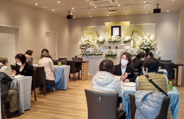 (写真)昨年12/2にオープンした「家族葬のファミーユ 松飛台ホール」で行われたオープニング相談会の様子。延べ200組の方がご来場されました。