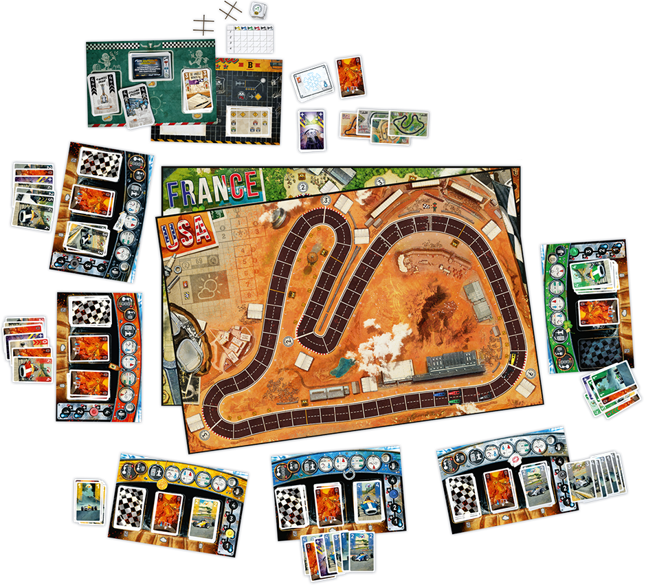 天候トークン6個、路面状況トークン12個、プレス席スタンド 2つ、スコアシート 1冊、