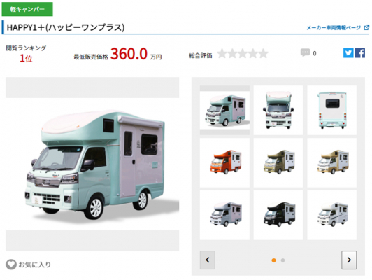 当サイトは、これからキャンピングカーの購入を検討されている方へ向けた日本最大級のキャンピングカーの比較サイトです。国内・海外を含む850台以上のキャンピングカーを、価格や車両サイズ、就寝人数やオプション装備など、約60種類の項目からスペック比較ができ、どのキャンピングカーが人気かを一定期間の閲覧数を基にランキング形式で表示。