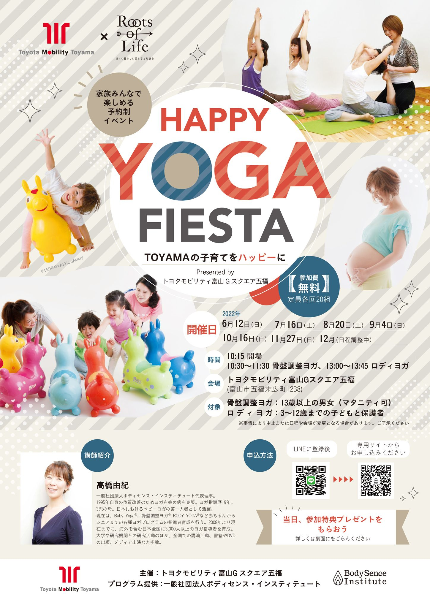 一般社団法人ボディセンス・インスティテュートは、12月18日(日)トヨタモビリティ富山 Gスクエア五福様にて、無料ヨガイベント「HAPPY YOGA FIESTA」を開催いたしました。「地域の皆さんの健康をサポートし、子育て世帯を応援したい」というトヨタモビリティ富山様による大好評の地域貢献イベントです。当日は、3歳~12歳の子ども向けキッズヨガ「ロディヨガ(R)」、13歳以上の方の健康増進のための「骨盤調整ヨガ(R)」を無料で体験していただきました。
