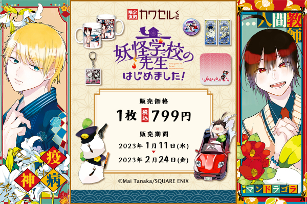 現在14巻まで絶賛販売中の大人気妖怪学園コメディ「妖怪学校の先生はじめました!」が1ヶ月半の期間限定の復刻再販を開始します!カラーイラストを使用したS賞タペストリー・A賞マグカップをはじめミニキャラやコミックスで人気のコマ使用したE賞ステッカーやF賞も必見です!1ヶ月半だけの期間限定での再販となりますので是非この機会をお見逃しなく!!