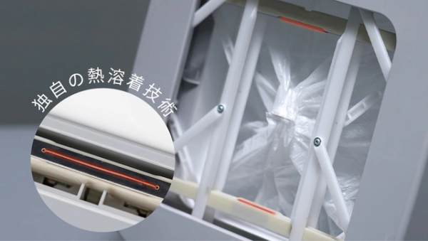 独自の熱溶着技術によってゴミ袋の口を閉じ込める安定性と安全性がUP!