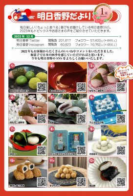 和菓子専科・明日香野が毎月発行している広報誌「明日香野だより」は、明日香野とお取引いただいている関係者様にその時期にあった明日香野関係のニュースをお知らせしています。
