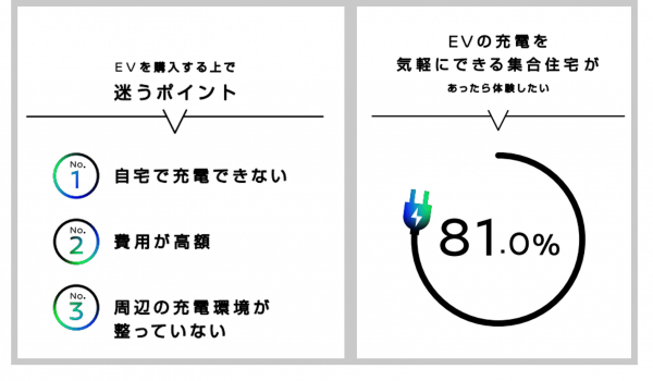 そのような中、「EV充電が気軽にできる集合住宅があるとしたら住む前に体験したいと感じますか?」との問いに対しては、8割以上が「体験してみたい」と回答。EV購入と住居の充電環境への関心の高さがうかがえます。