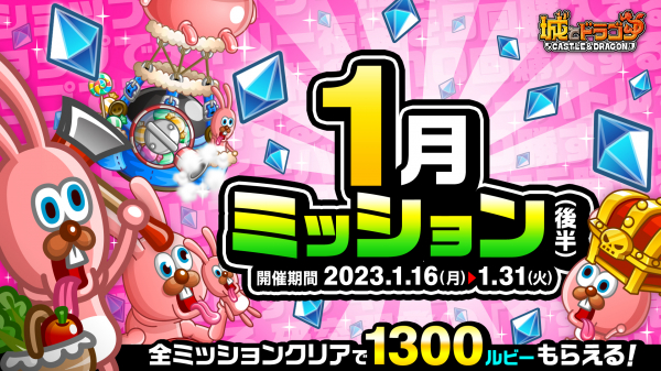 株式会社アソビズム(本社:東京都千代田区、代表取締役:大手智之)は、App Store・Google Playにて好評配信中の『城とドラゴン』で、「1月ミッション(後半)」を2023年1月16日(月)より開催いたします。