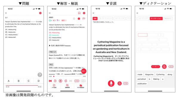 これまで無料版で利用可能であった「音声再生」「マークシート」「学習記録」に加え、有料版では「アプリ学習」「SWトレーニング※」「単語一覧」が利用可能になり、よりTOEIC(R) L&Rテストの受験者の学習をサポートします。