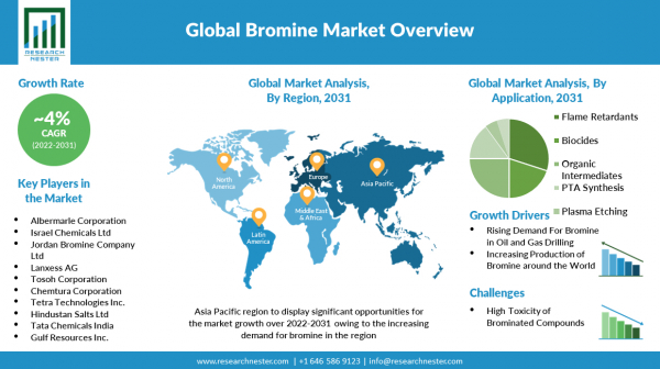 Research Nester Private Limitedは、臭素市場の予測評価を提供する調査レポートを2023年01月 17日 に発刊しました。これは、臭素市場の成長ドライバー、市場機会、課題、脅威など、いくつかの主要な市場ダイナミクス強調しています。