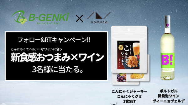 株式会社ノムノ(本社:東京都港区 代表取締役社長:蔵石 周太)が運営するワインバーnomunoとマルキン食品株式会社(本社:熊本市中央区 代表取締役社長:吉良 扶佐子)がTwitterでおつまみとワインのセットをプレゼントするキャンペーンを1月18日-22日に開催いたします。