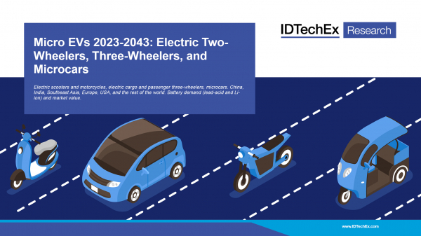 IDTechEx(先進技術調査会社: 本社英国 ケンブリッジ)は、「マイクロEV 2023-2043年: 電動二輪車、三輪車、マイクロカー」と題した調査レポートを発行し、2022年12月26日より、日本法人のアイディーテックエックス株式会社(東京都千代田区)での販売を開始しました。