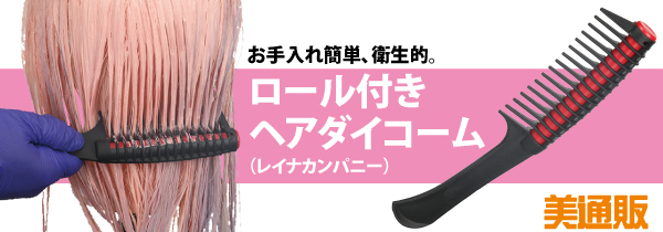 「ロール付きヘアダイコーム」は、薬剤のダマ解消!コームの背に薬剤が溜まりにくいロール付きコームです。「美通販」では、サロンワークの効率アップに最適な「ロール付きヘアダイコーム」を、美通販会員特別価格にてご提供いたします。