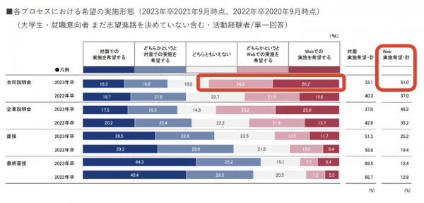 参考:合同説明会をWEBで実施して欲しい学生の割合が初の50%超え(増加傾向)