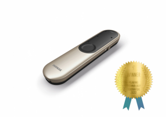 *ソノヴァ社が製造販売を行うデジタルワイヤレス補聴援助システム「ロジャー」の送信機(ワイヤレスマイクロホン)。ロジャーについて詳しくは https://bit.ly/3W86j4I