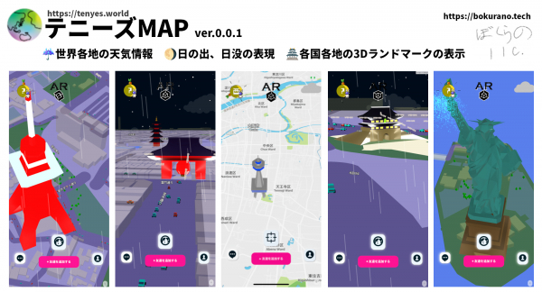 中学生が代表を務める、モバイルゲームアプリ開発会社「ぼくらの合同会社」( 所在地:神奈川県相模原市 ボス 内川空 中学校1年生 13歳 url: https://bokurano.tech )は、geekline合同会社 (所在地:神奈川県相模原市 代表 内川天 url: https://geekline.biz )及び、 Skyus, Inc.(所在地 Portland USA url: https://sky.us.com)と合同で、WebGL技術を用いた、ポップでキュートな「テニーズMAP」を、Apple 「app Store」 および、Google 「Play Store」にて配信中の、AR機能を搭載した位置情報共有アプリ「テニーズワールド AR」内にて、2023年1月20日配信を開始しました。
