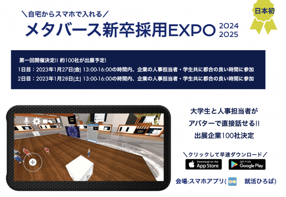 「メタバース新卒採用エキスポ2024/2025」の会場が「就活ひろば」アプリになることを2023年1月19日に発表。