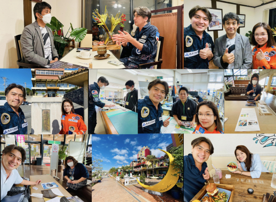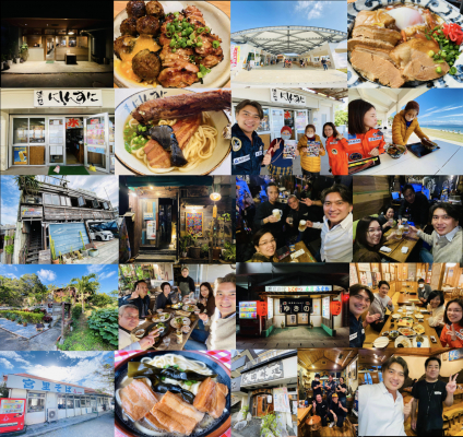 また、名護市や伊江島などの地域産業活性化に向けた宇宙利用のための視察として、シーサイドカフェ「Blue Trip」、Cafe and Bar 「accrotechno×波波」、焼鳥居酒屋「ぐぅ~や」、喫茶「九年母」、海鮮居酒屋「ゆきの」、沖縄料理の居酒屋「大国林道」、沖縄そば屋「宮里そば」、海の家「にしんすに」(伊江島)などの飲食店を視察いたしました。