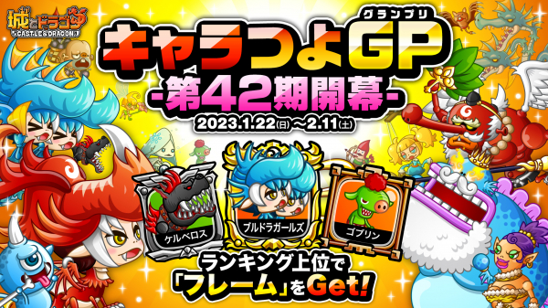 株式会社アソビズム(本社:東京都千代田区、代表取締役:大手智之)は、App Store・Google Playにて好評配信中の『城とドラゴン』で、2023年1月22日(日)より「キャラつよグランプリ第42期」を開催することをお知らせします。