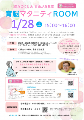 株式会社城南進学研究社(本社:神奈川県川崎市、代表取締役社長CEO:下村勝己、以下「当社」)は、2023年1月28日(土)、当社が運営する0歳からの育脳幼児教室「くぼたのうけん」自由が丘教室にて、「育脳マタニティROOM」を開催します。