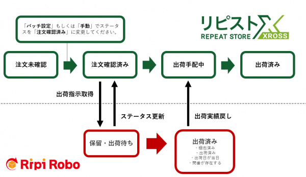 →リピストX(リピストクロス)で「注文確認済み」ステータスの注文を取り込みます。