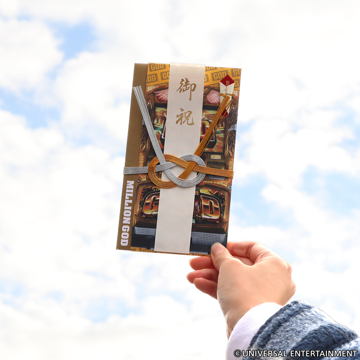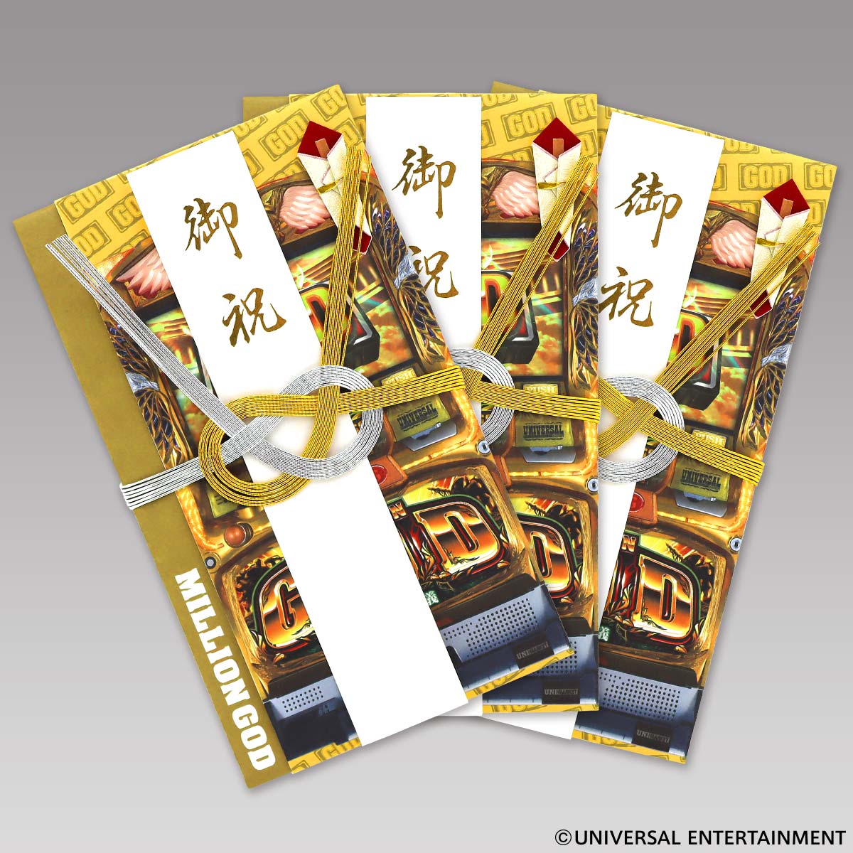 金色が特徴のミリオンゴッドがデカデカとプリントされたインパクト大なご祝儀袋です!