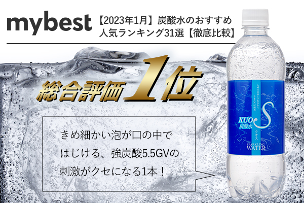 強炭酸水KUOSは、2022年8月15日にもmy best【徹底比較】で炭酸水市場の有名ブランドを含む31選の中から1位を獲得しており、今年で2度目の1位となりました。