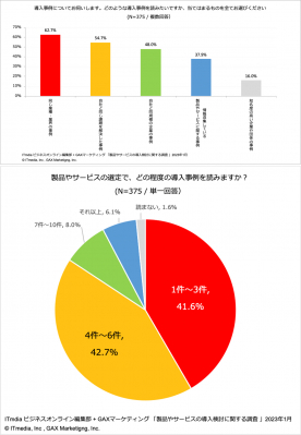 製品・サービスの導入検討時には、自社と同業種・同業界で、同じ課題を解決した、同規模の導入事例を重視し「4本~6本」の導入事例を読む読者が多いことがわかりました。