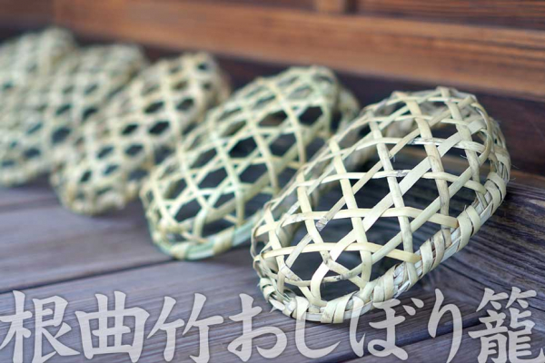 国産で耐久性抜群の根曲り竹を使った素朴なおしぼり籠は自然のぬくもりが感じられそうです。