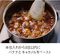フランスの権威ある菓子コンクール「クープ・デュ・モンド・ドゥ・ラ・パティスリー 2017」にて世界第2位に、2023年の同大会では団長として日本チームを世界第1位に導いたシュゼット・ホールディングス トップパティシエの駒居氏が『バナナーナ』を監修。新鮮なバナナを3日以内※にピューレ化して作った自家製のキャラメルバナナペーストと、ドーナツ生地にはバナナと相性の良いチョコレートチップとココナッツをアクセントに加え、食感を出しました。どこから食べてもバナナを感じられるように自家製ペーストを4か所に絞ることで、食べた瞬間にバナナの香りが広がります。