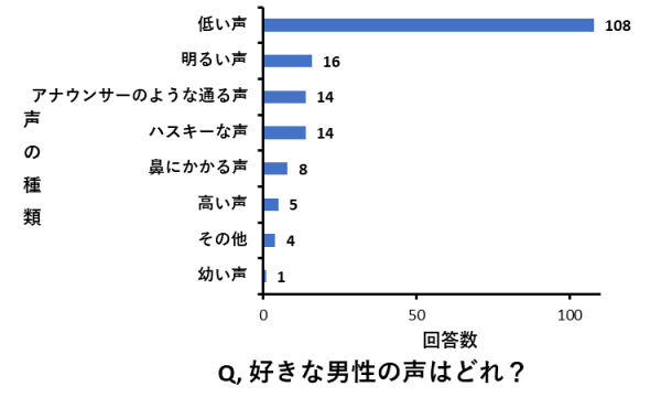 全国の女性を対象に「男性のどんな声が好きなのか」についてアンケートを実施した結果、「低い声」が最も人気であるということが分かりました。