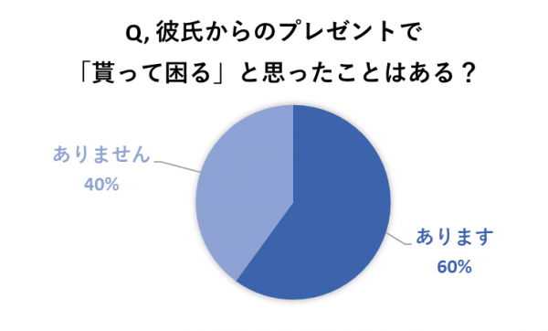 実際に彼氏からのプレゼントで「貰って困る」と回答した方は6割を占めていました。およそ半数以上の女性が彼氏からのプレゼントに対し、不満を感じているようです。