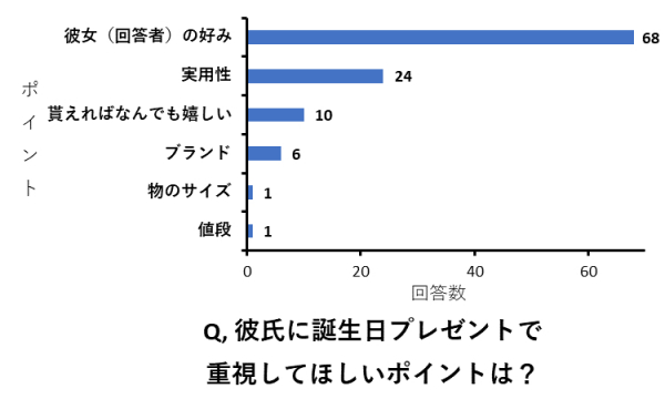 Q, 彼氏に誕生日プレゼントで重視して欲しいポイントは?