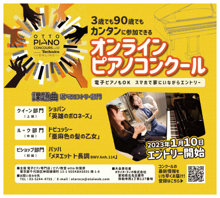 ottoピアノコンクールは2月14日(火)にエントリー締め切りが迫っております。