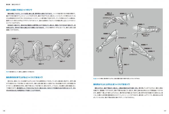 布地にシワが現れるしくみから、どんなシワの種類があるか、どのように描けばよいかまで、わかりやすく体系的に解説していきます。